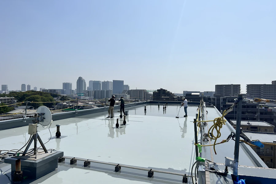 屋上防水工事の施工完了間近の写真です↓