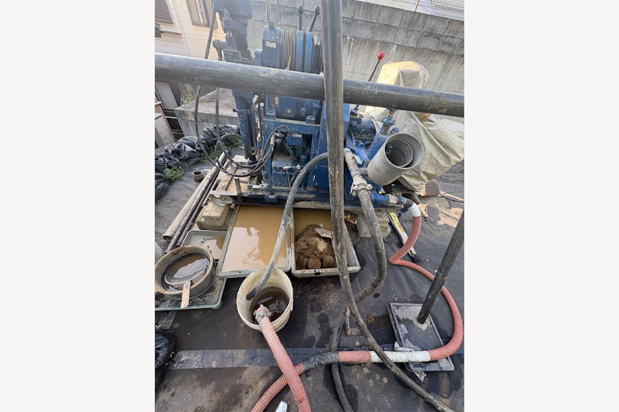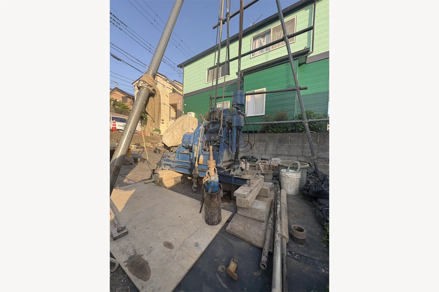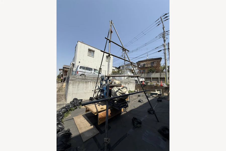 まずは土留めの擁壁が倒れない様に、地盤調査を行いました!
