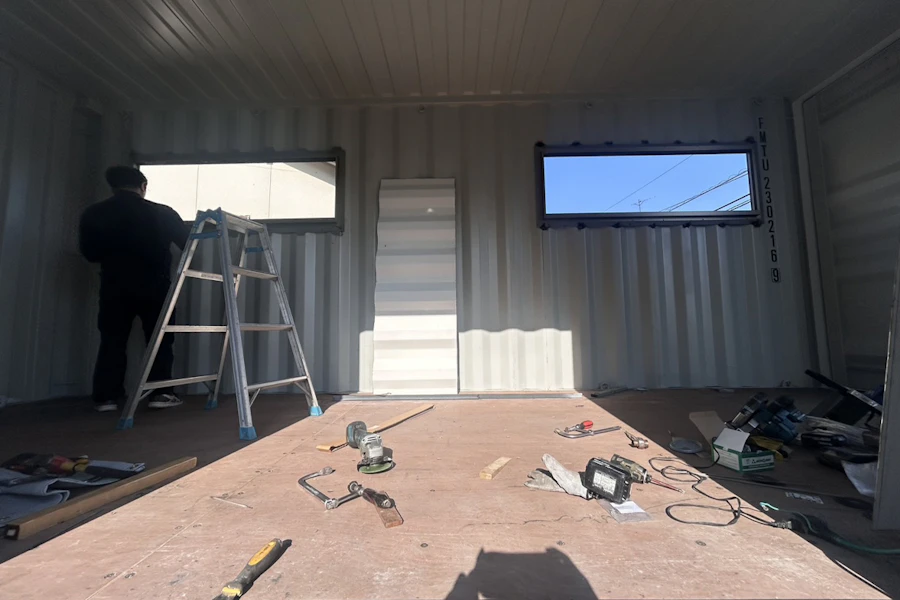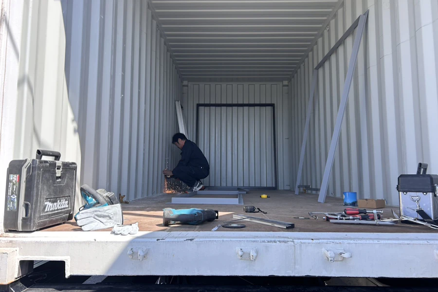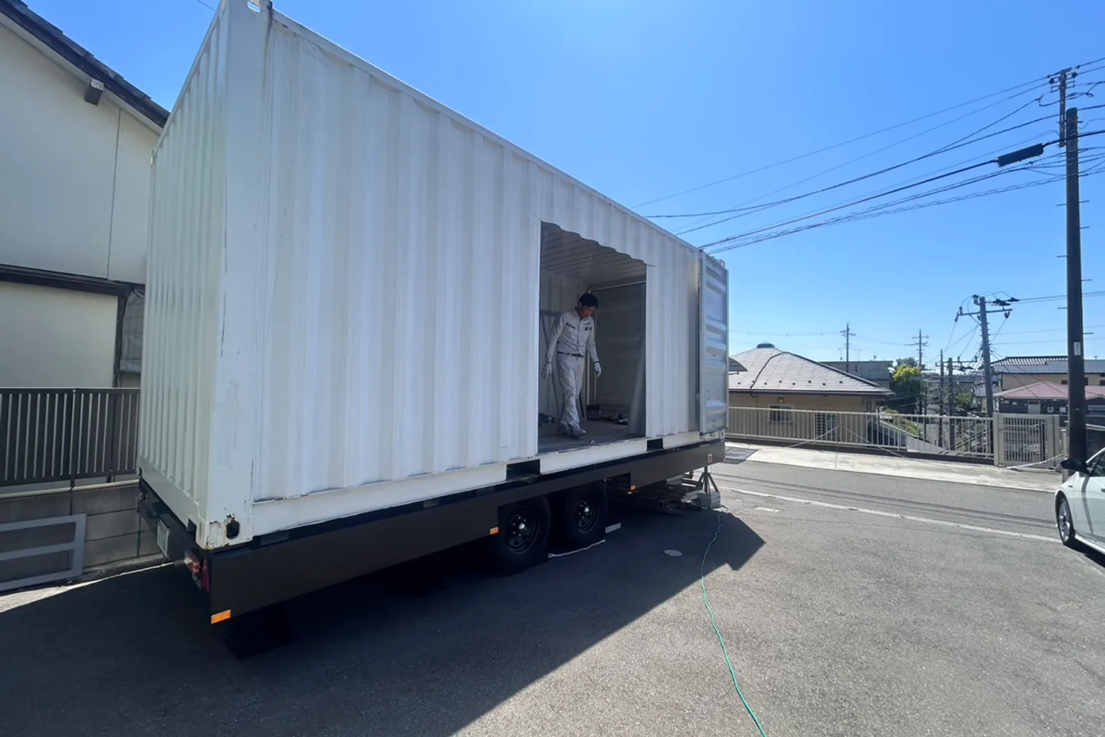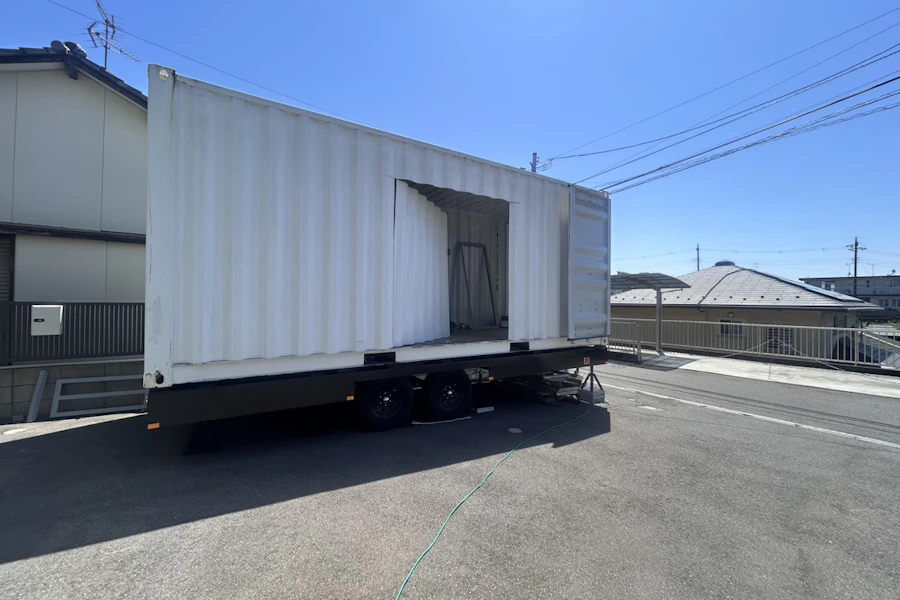 前回はシャーシを搬入⇒コンテナ搬入、設置までご覧頂きました