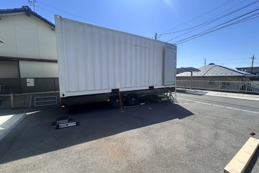 事務所前のトレーラーハウス設置工事についてです♪
