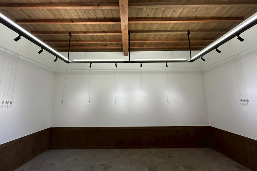 展示に適した照明を設置する架台を組んでいます!