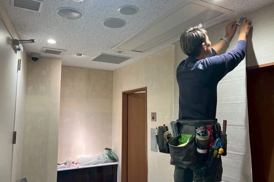 某銀行のクロス張替え工事中の写真です↓