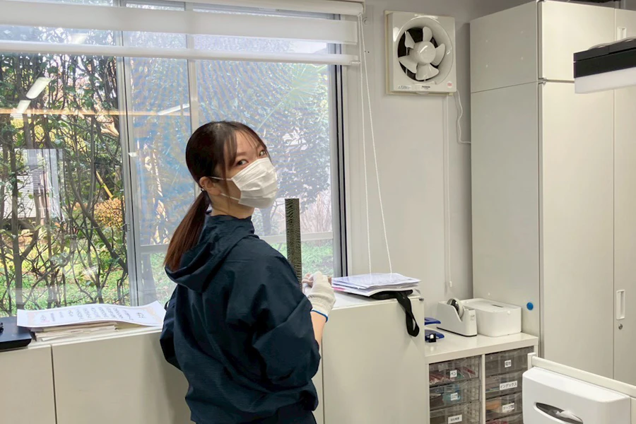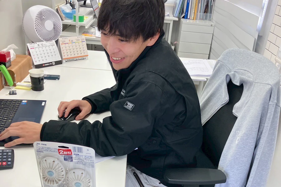 前職までは接客業や医療事務に就業しており、建築業未経験で2023年3月に建サポに入社しました。入社後はサポート部門の検査や派遣事務、広報の仕事をメインに携わっています。