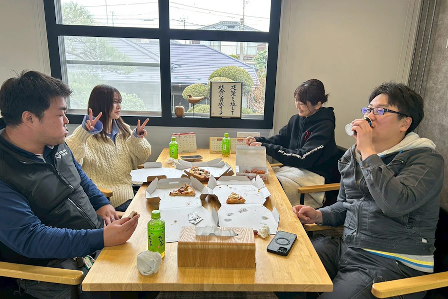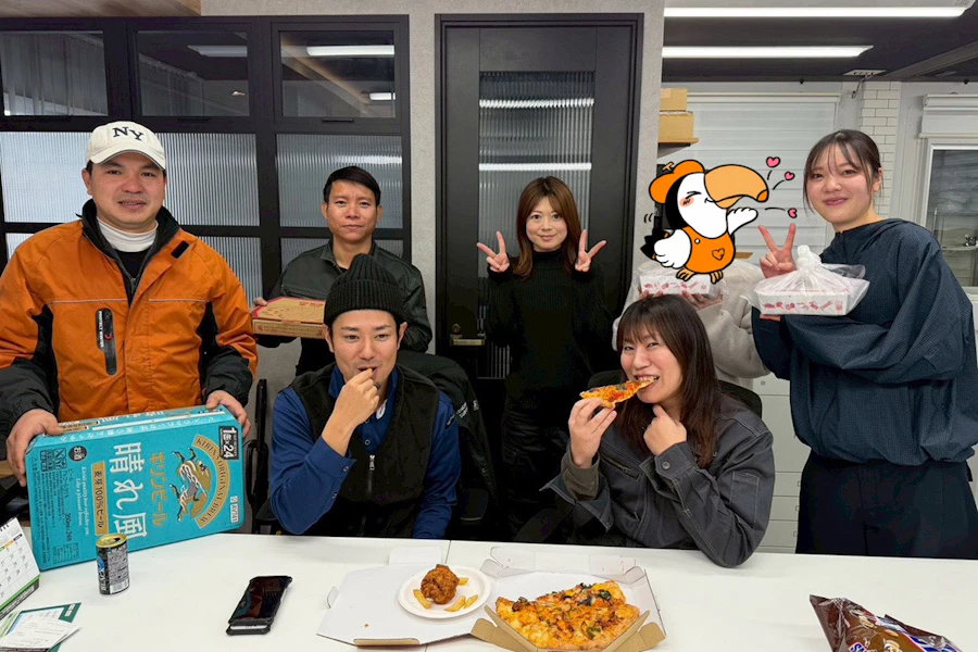 大掃除後は、社長の計らいで皆んなでピザパーティー!!!