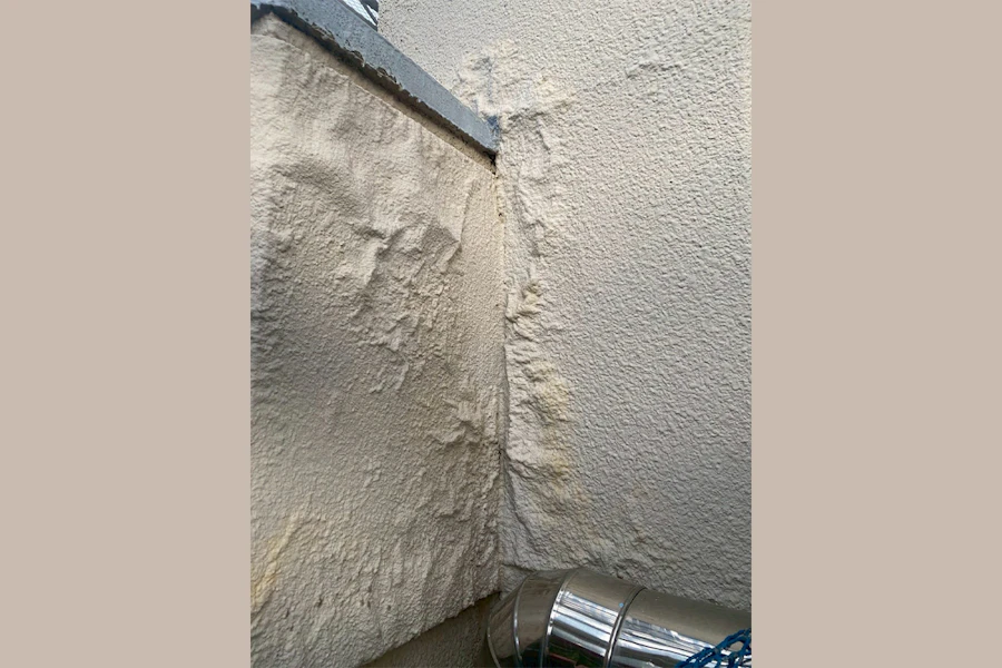 ↑体育館の外壁塗装に雨水が侵入し全体的に浮いていた為