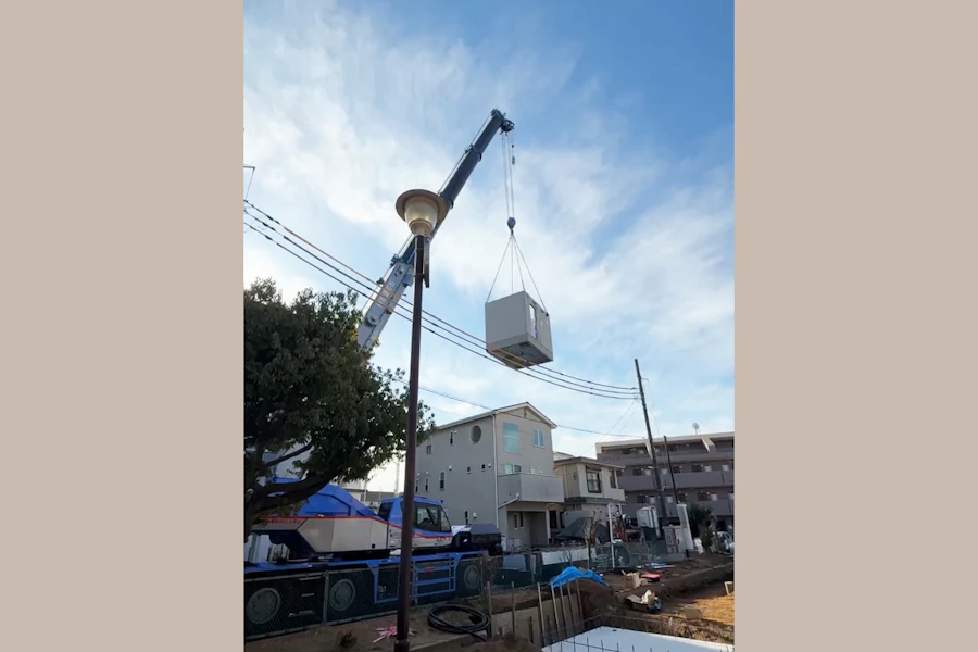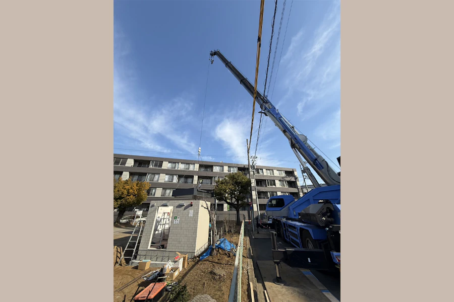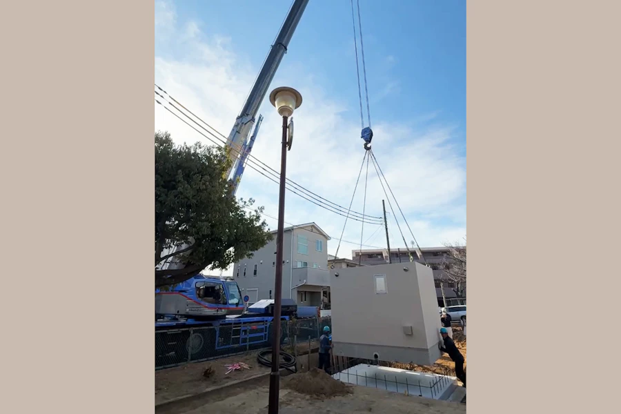 クレーンで吊り上げて設置します