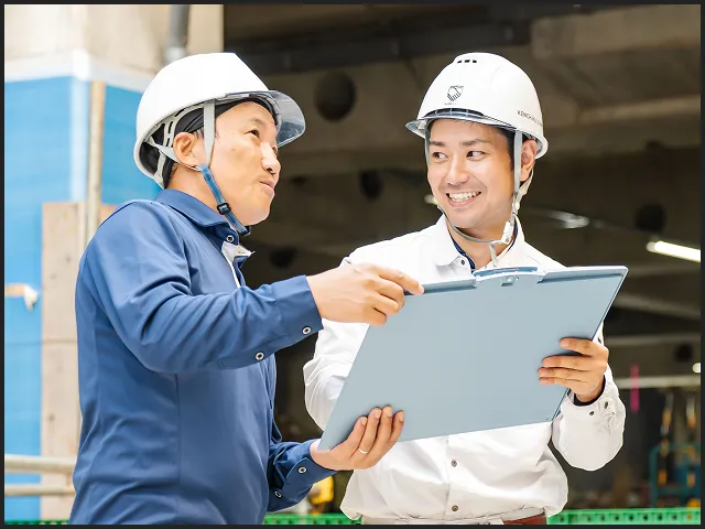前職までは接客業や医療事務に就業しており、建築業未経験で2023年3月に建サポに入社しました。入社後はサポート部門の検査や派遣事務、広報の仕事をメインに携わっています。